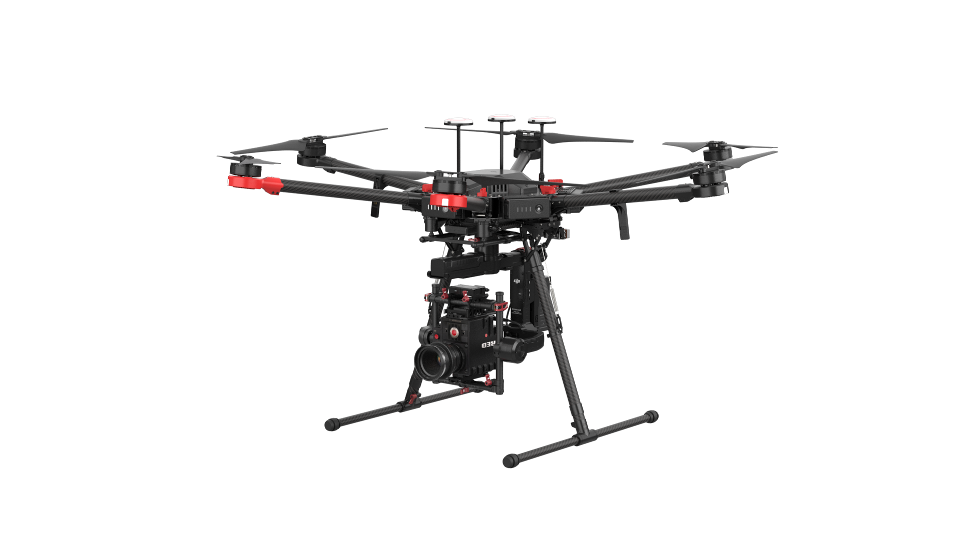 The Matrice 600 Pro supports a total take-off weight of 15.5Kgs enabling it to carry fully-kitted cameras like the RED and the Alexa Mini.
